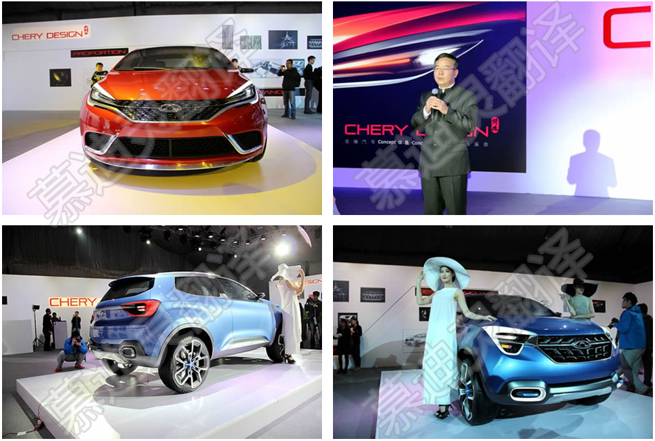北京車展開幕前一天的4月19日,奇瑞汽車Chery Design品鑒會在奧雅會展中心舉行,旨在向媒體展示奇瑞全新的產品設計理念,現場還展示了奇瑞新的的概念車concept α與concept β。奇瑞汽車副總經理、汽車工程研發總院院長陳安寧、奇瑞總經理助理、營銷公司總經理黃華瓊、奇瑞汽車造型設計總監James Hope等出席了本次活動, 此次品鑒會由北京慕迪靈翻譯公司提供同聲傳譯服務,慕迪靈同傳精英優異的翻譯水平獲得主辦方及參會嘉賓的一致好評。