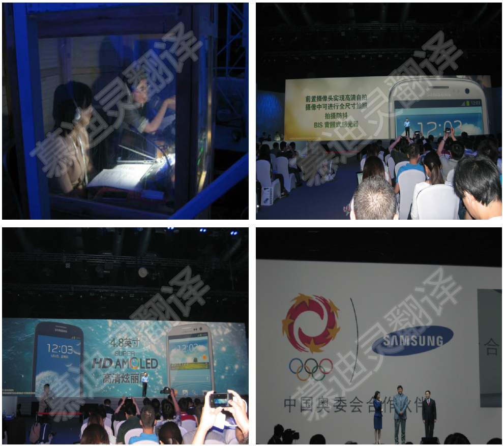 繼三星NX新聞發(fā)布會之后,三星GALAXY SIII環(huán)球之旅新聞發(fā)布會再度由慕迪靈翻譯公司提供同傳設(shè)備及同傳譯員。此次大會在國家會議中心隆重開幕,曾參與三星GALAXY SIII在英國、印度新聞發(fā)布會的VIP嘉賓給予了慕迪靈極高的評價。三星現(xiàn)已與慕迪靈建立了長期合作的關(guān)系。