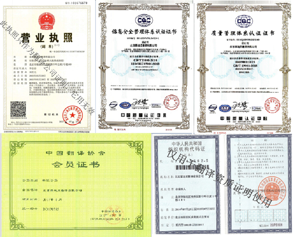慕迪靈翻譯公司資質證書展示